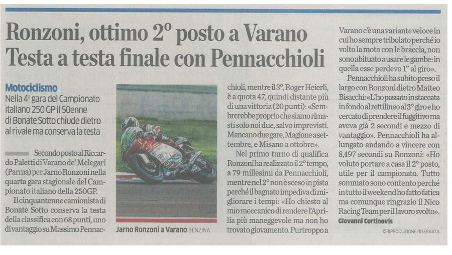 Il Mugello accoglie con tutti gli onori le moto da gran premio. L'ottima prestazione del bergamasco Ronzo...