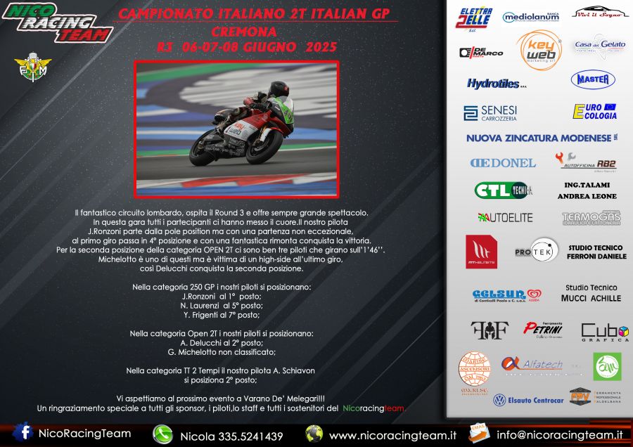 Il Mugello accoglie con tutti gli onori le moto da gran premio. L'ottima prestazione del bergamasco Ronzo...